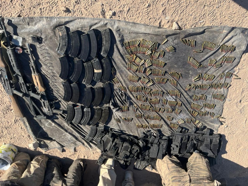 Se les aseguraron tres fusiles de asalto AK-47, 22 cargadores para AK-47, 519 cartuchos calibre 7.62×39, tres chalecos tácticos color negro, una cubeta con 50 ponchallantas, así como la unidad motriz Jeep Cherokee, modelo 2007, con reporte de robo en Estados Unidos de América.