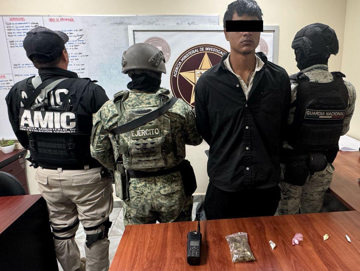 Magdalena de Kino, Sonora, 19 de marzo de 2025.- La Agencia Ministerial de Investigación Criminal (AMIC) en coordinación con la Secretaría de la Defensa Nacional (DEFENSA) y Guardia Nacional (GN), aseguró a un sujeto en posesión de droga y un radio portátil utilizado presuntamente para actividades de halconeo, durante un operativo realizado en el ejido La Cebolla, en el municipio de Magdalena de Kino.