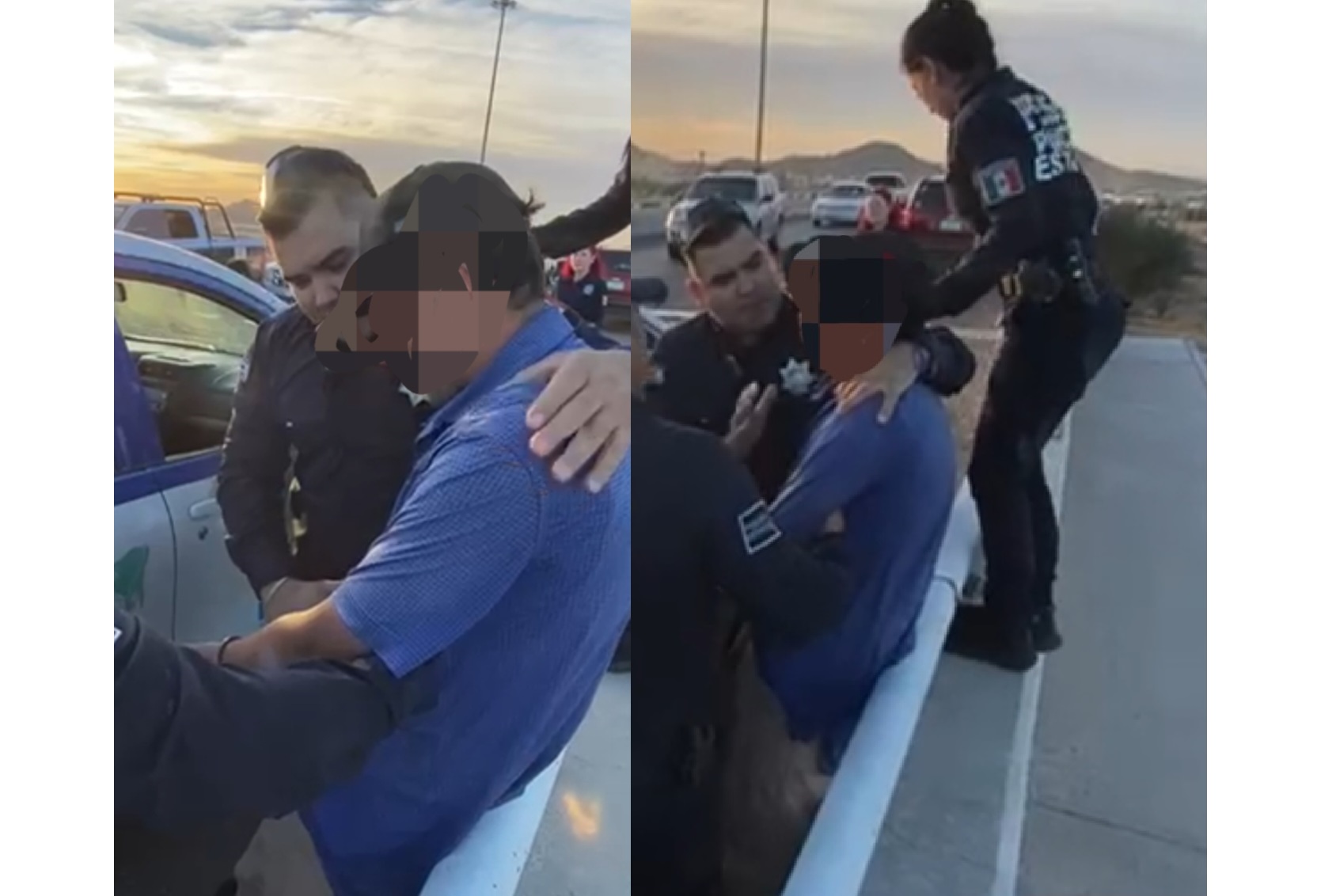 Hermosillo, Sonora a 28 de diciembre de 2024. – Policías Municipales y Estatales evitaron que un joven de 29 años de edad, se arrojara del puente ubicado en la carretera 15 y bulevar Zamorano.